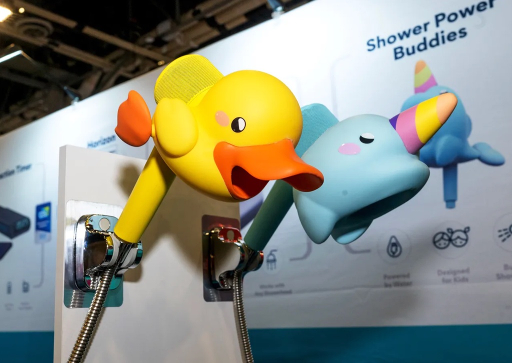 Ampere Shower Power Buddies là mẫu loa Bluetooth gắn lên vòi sen để phát nhạc mỗi khi người dùng tắm. Với giá 69 USD, chiếc loa có nhiều tùy chọn hình dạng như vịt cao su, rùa biển hoặc kỳ lân biển. Sản phẩm sử dụng năng lượng nước nên không cần sạc.