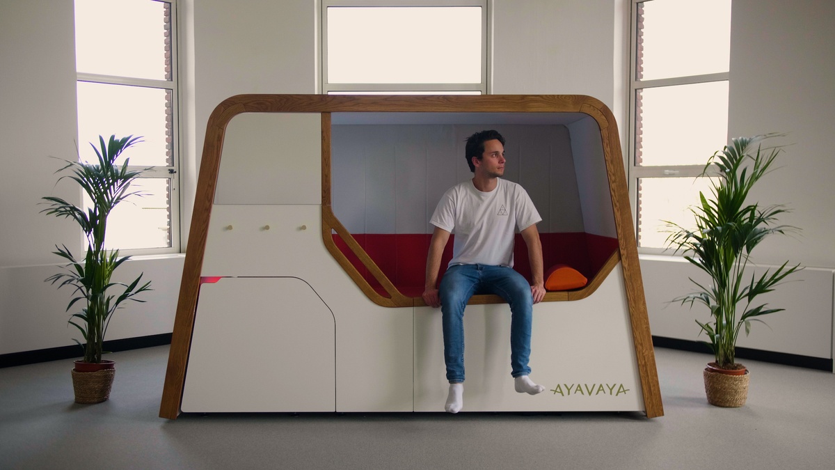 Ayavaya mang đến CES 2023 chiếc cabin chống căng thẳng, giúp người dùng lấy lại bình tĩnh. Khi nằm trên giường, các cảm biến sẽ đo mức độ stress, dùng ánh sáng, âm thanh, mùi hương và kỹ thuật Shirodhara để tạo cảm giác thư giãn. Ayavaya đang tìm kiếm nhà đầu tư cho thiết bị, nếu thành công sẽ thương mại hóa với giá 25.000 USD.