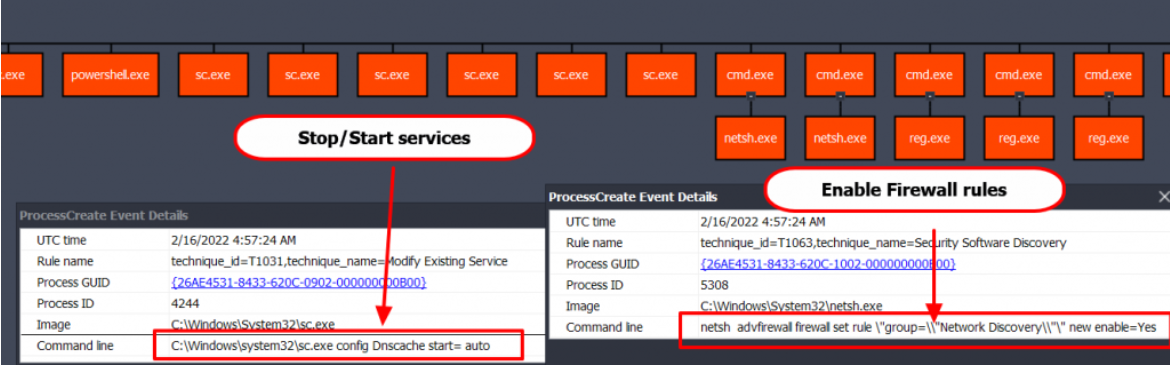 5. Mã độc kích hoạt các rule firewall cho Network Discovery và File and Printer Sharing.