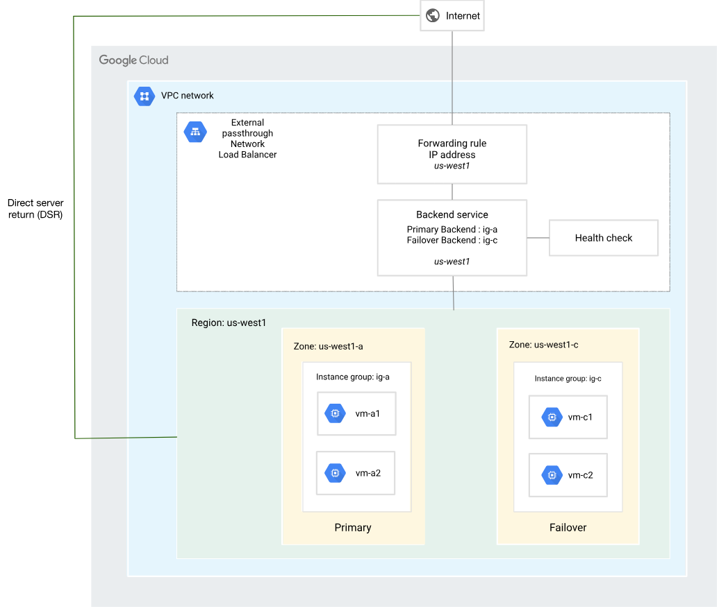 **Ghi chú: Trang này mô tả cách hoạt động của chức năng failover đối với external passthrough Network Load Balancers dựa trên backend service. Tài liệu này không áp dụng cho các external passthrough Network Load Balancers sử dụng target pool làm backend.