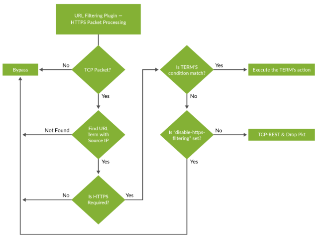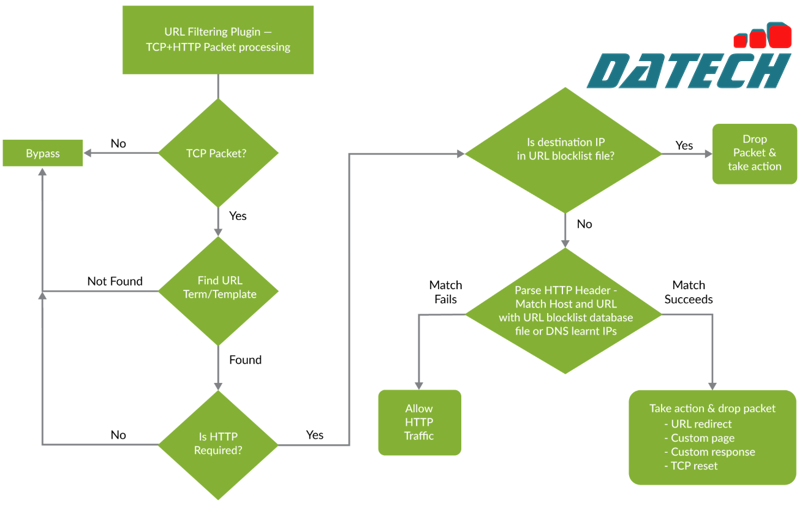 Khi có lưu lượng HTTP hoặc HTTPS mới đến router, quyết định cho phép hay chặn sẽ được đưa ra dựa trên thông tin trong tệp cơ sở dữ liệu lọc URL. Các quy tắc lọc sẽ được kiểm tra, và router sẽ hoặc: Cho phép lưu lượng và chuyển tiếp hoặc chặn lưu lượng. Nếu lưu lượng bị chặn, một trong các hành động cấu hình sau sẽ được thực hiện: