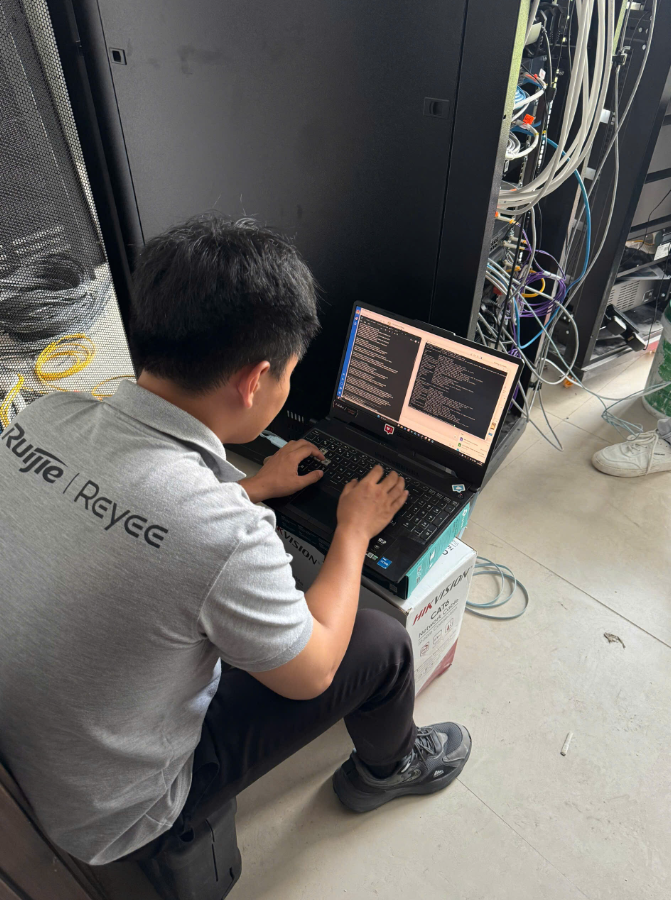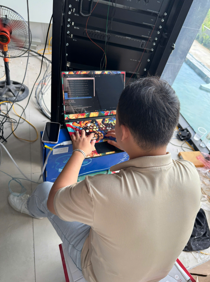 - Đấu nối cáp mạng, nguồn điện và tổ chức lại hệ thống dây để thuận tiện bảo trì.